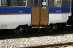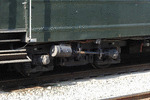 A boogies of first class passenger car of MAV (Magyar Allam Vasutak / Hungarian Railways) type "Apee" with number 51 55 18 36 002 - 6 at central railway station Sofia in composition of an attraction train.