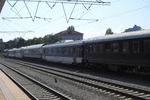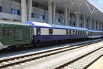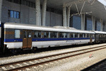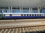 A first class passenger car of MAV (Magyar Allam Vasutak / Hungarian Railways) type "Apee" with number 51 55 18 36 002 - 6 at central railway station Sofia in composition of an attraction train.