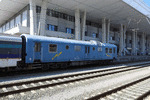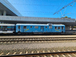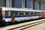 A first class passenger car of MAV (Magyar Allam Vasutak / Hungarian Railways) type "Apee" with number 51 55 18 36 005 - 9 at central railway station Sofia in composition of an attraction train.