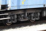 A boogies of generator car of MAV (Magyar Allam Vasutak / Hungarian Railways) with number 56 55 99 05 002 - 0 at central railway station Sofia in composition of an attraction train.