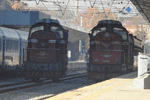 A 2 diesel shunters of class 55-00 at central railway station Sofia, before shunting duties.