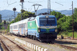 A private electric locomotive with number 91 52 00 46 515 - 0, owned by private operator "Euro Engineering" cross through railway station Kostenec with freight train. A video about crossing the train, you can see here: