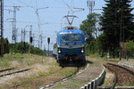 A private electric locomotive SIEMENS Vectron with number 91 52 10 81 972 - 7, owned by private operator "PIMK Rail" standing at railway station Septemvri with test train.