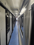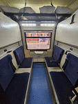 An interior in a couchtette car "Aclm" of TCDD ( Turkiye Cumhuriyeti Devlet Demiryollari / Turkish Railways ) at railway station KapIkule in composition of International train Istanbul Sofya Ekspresi with number.