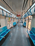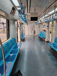 An interior in EMU of type E 32000 of TCDD ( Turkiye Cumhuriyeti Devlet Demiryollari / Turkish Railways ) , using a Marmaray transport system in Istanbul.