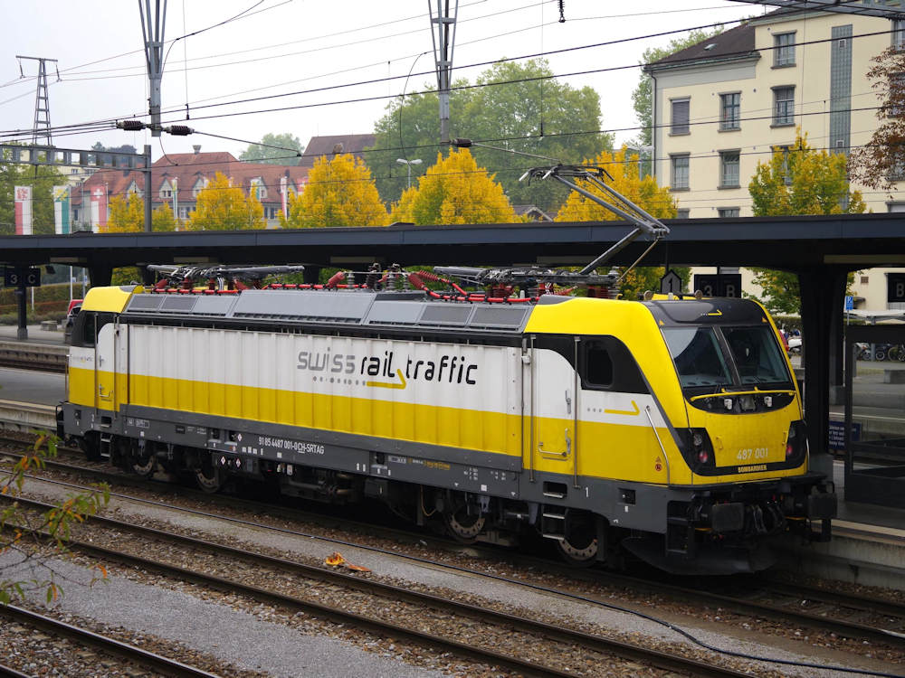 Swiss Rail Traffic electric locomotive type TRAXX number Rem 487 001 (now sold).