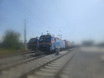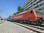 A 2 electric locomotives, both owned by private operator "Bulmarket" at central railway station Plovdiv with freight trains.