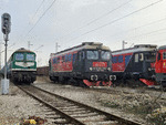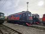 A private electric locomotive Softronic Transmontana with number 91 53 0 480 016 - 1, owned by private operator "DB Cargo Romania" at railway station Nis with freight train.