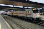 DB Electric loco 146 577-2 (NVR 91 80 6146 577-2 D-DB) leading its set of Double-Deck coaches for IC service at Dusseldorf HBF. 12/10/2025