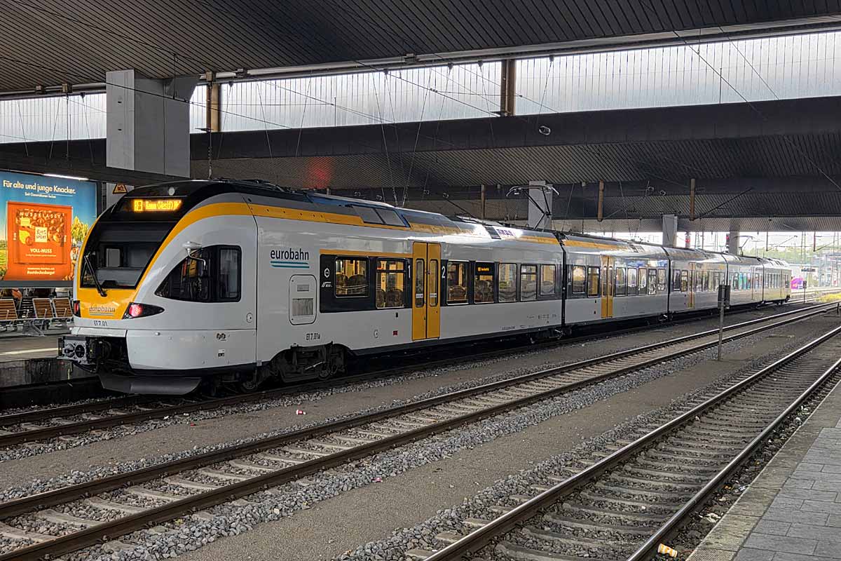 German operator Eurobahn EMU-5 ET7-01 (FLIRT from Stadler) at Dusseldorf HBF. 08/10/2025