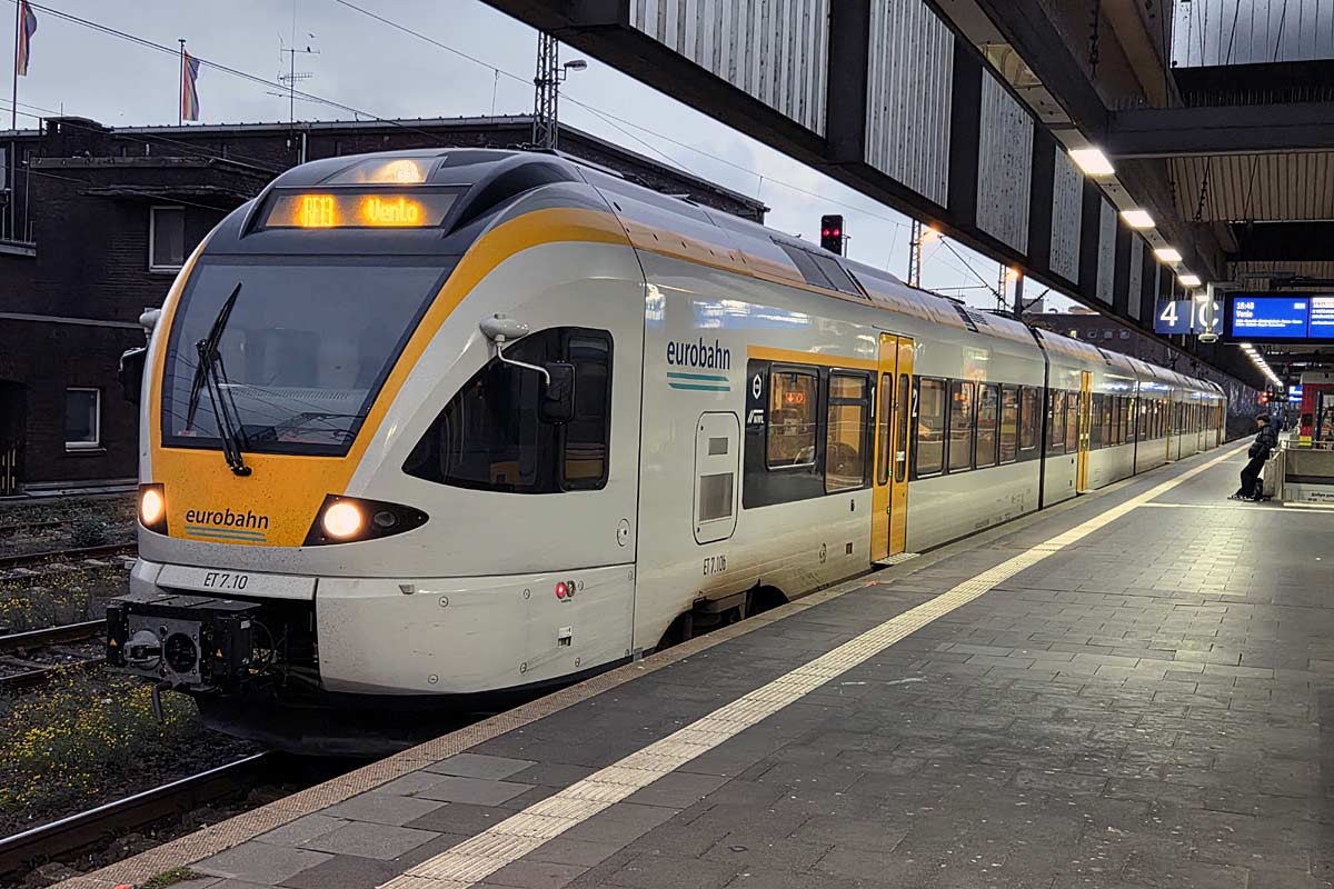 German operator Eurobahn EMU-5 ET7-01 (FLIRT from Stadler) at Dusseldorf HBF. 12/10/2025