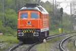 A private diesel locomotive with number 92 52 00 07 118 - 9 , owned by private operator "Euro Engineering" at railway station Vakarel after pulling a freight train.