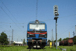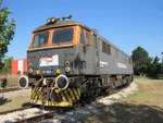 A private electric locomotive with number 91 53 00 87 028 - 4 , owned by private operator BRC ("Bulgarian Railway Company") in the base of "Express Service" near railway station Obrazcov Chiflik.