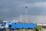 A private electric locomotive SIEMENS Smartron with number 91 52 10 80 063 - 6 , owned by private operator "RCC-B" at railway station Belovo with freight train.