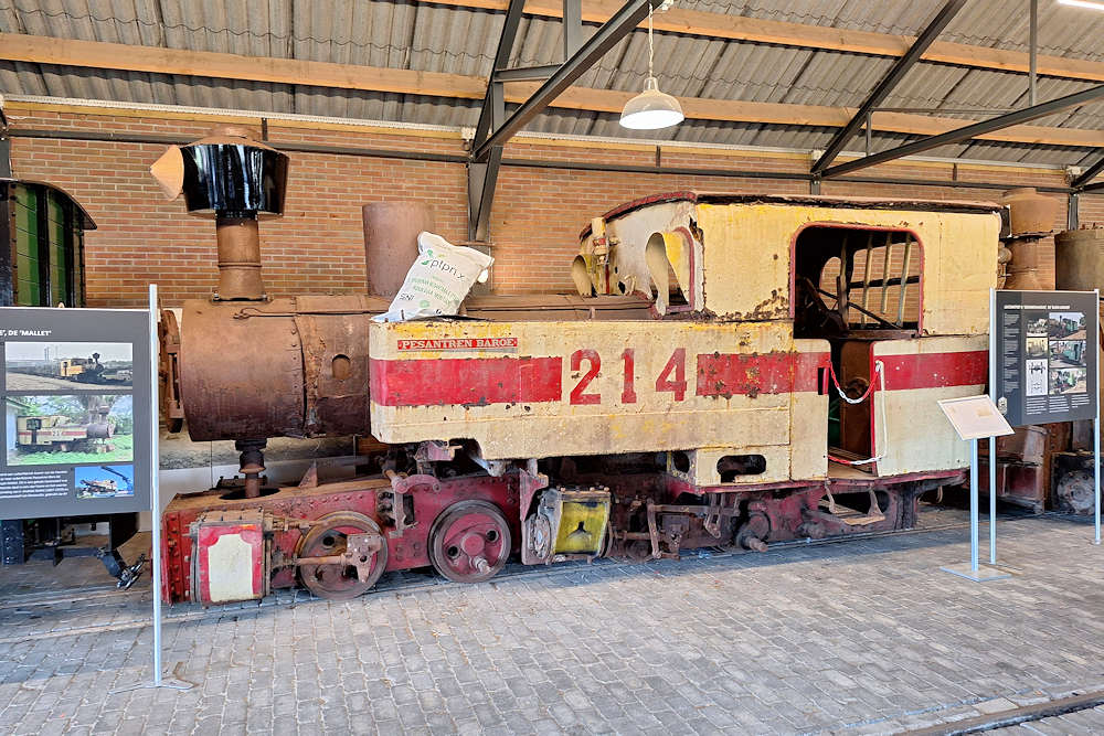 Stoomtrein Katwijk Leiden/National Narrow Gauge Museum - The Netherlands In 2024 two Dutch-built narrow gauge steam locomotives were brought back from Indonesia (former Netherlands India) where they were no longer used by the sugar factories they belonged to. This special "Mallet" locomotive 214 was built for sugar factory Koenir in 1928. Later it migrated to sugar factory Pesantren Baru. There are plans to rebuild this locomotive into operationg condition. Katwijk, 27-07-2024 Photo by Marco van Uden |