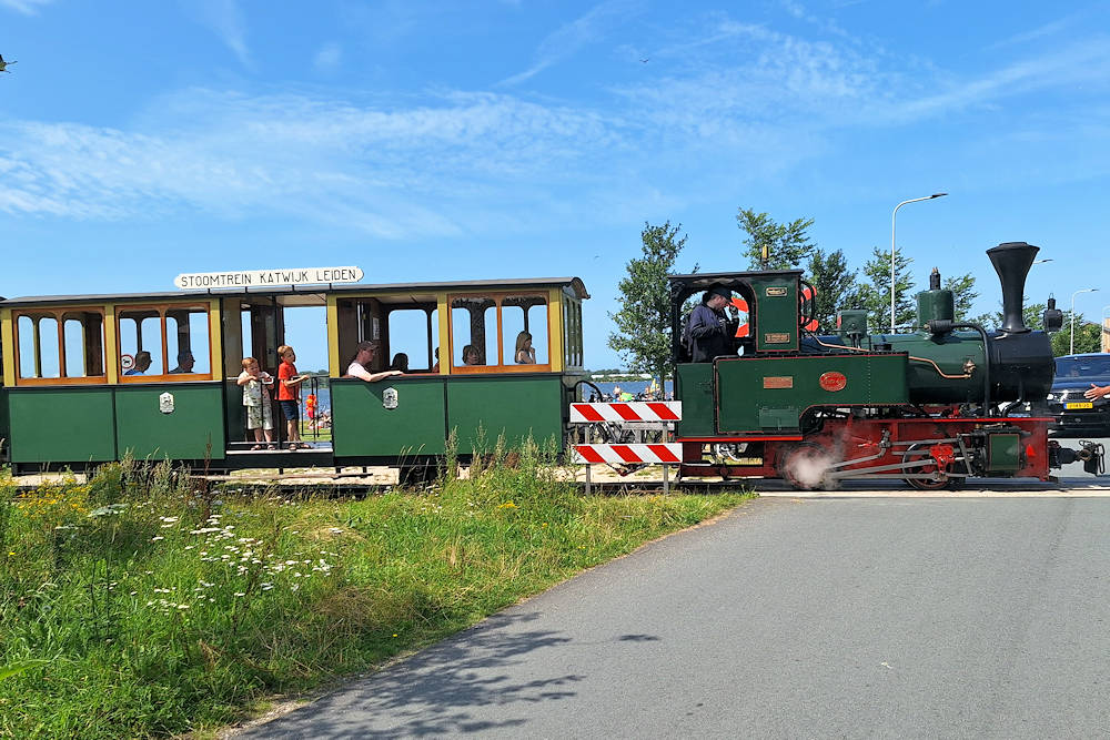 Stoomtrein Katwijk Leiden/National Narrow Gauge Museum - The Netherlands Steam locomotive 4 "K.A. Neve" has almost finished the now completed circular run around the Valkenburg lake, and will soon arrive back at the main station. Katwijk, 27-07-2024 Photo by Marco van Uden |