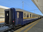 A retro Hungarian car with number 51 55 88 81 012 - 4 type "WRm" at central railway station Sofia in composition of special train "Golden Eagle Danube Express Balkan Explorer" from Venice to Istanbul.