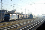 A private electric locomotive with number 91 52 00 46 006 - 0, owned by private operator TPPBD ("Termo Power Plant Bobov Dol") at central railway station Plovdiv with freight train.