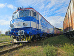 A 2 electric locomotives, both owned by private operator "Bulmarket" at central railway station Plovdiv with freight trains.