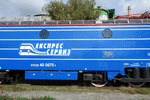 A private eletric locomotive with number 91 53 0 40 0675 - 1, owned by private operator "Express Service", standing near railway station Dimitrovgrad central after pulling a freight train.