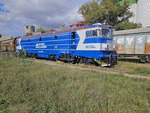 A private electric locomotive with number 91 52 00 85 637 - 4, owned by private operator "Rail Net Cargo" at railway station Svilengrad after pulling a freight train.