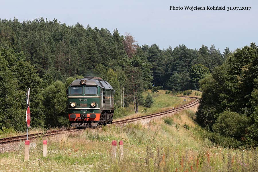 PKP Cargo ST44-1103 is going from Mockava (Lithuania) to Suwalki 31.07.2017, track Kaletnik - Suwalki Photo W. Kolins |
