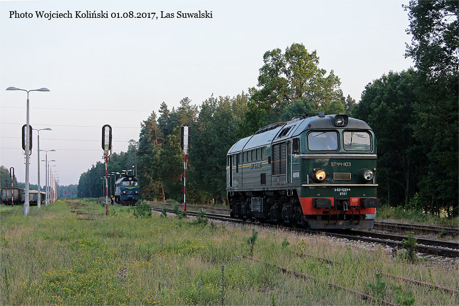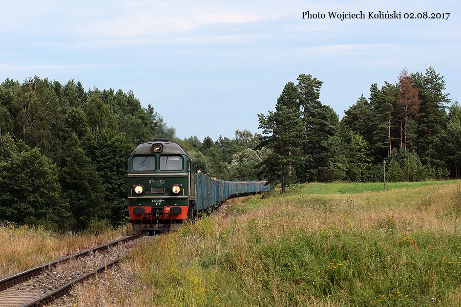 PKP Cargo ST44-1103 with the freight train to Las Suwalski 01.08.2017, track Szczepki - Plociczno Photo W. Kolins |