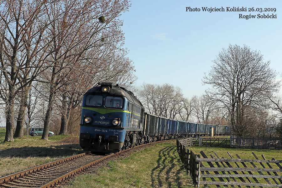 PKP Cargo ST44-1224 with the freight train Wroclaw Brochow - Sobotka Zachodnia 26.03.2019, Rogow Sobocki Photo W. Kolins |