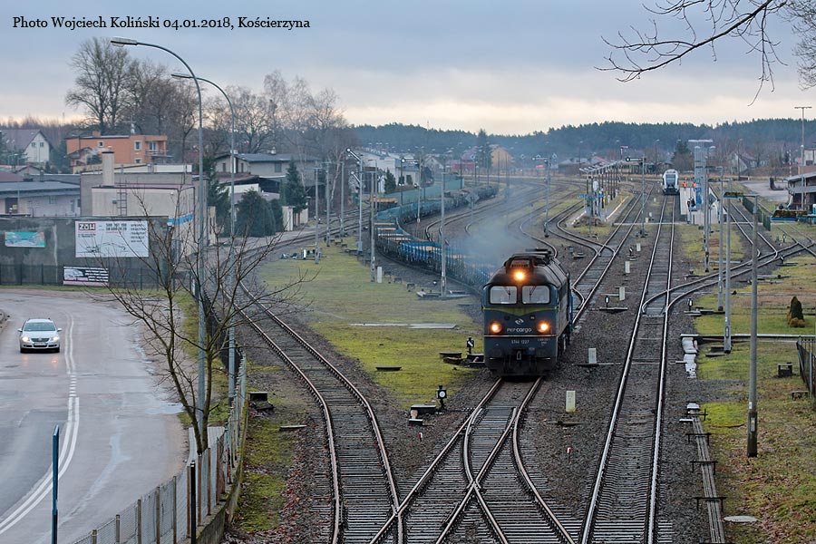PKP Cargo ST44-1227 with the freight train Zajaczkowo Tczewskie - Somonino 04.01.2018, Koscierzyna Photo W. Kolins |