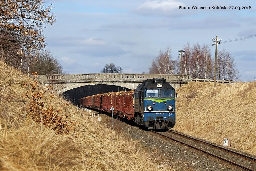 PKP Cargo ST44-1228 with the freight train Koscierzyna - Komoro (Hungary) 27.03.2018, track Koscierzyna - Podles Photo W. Kolins |