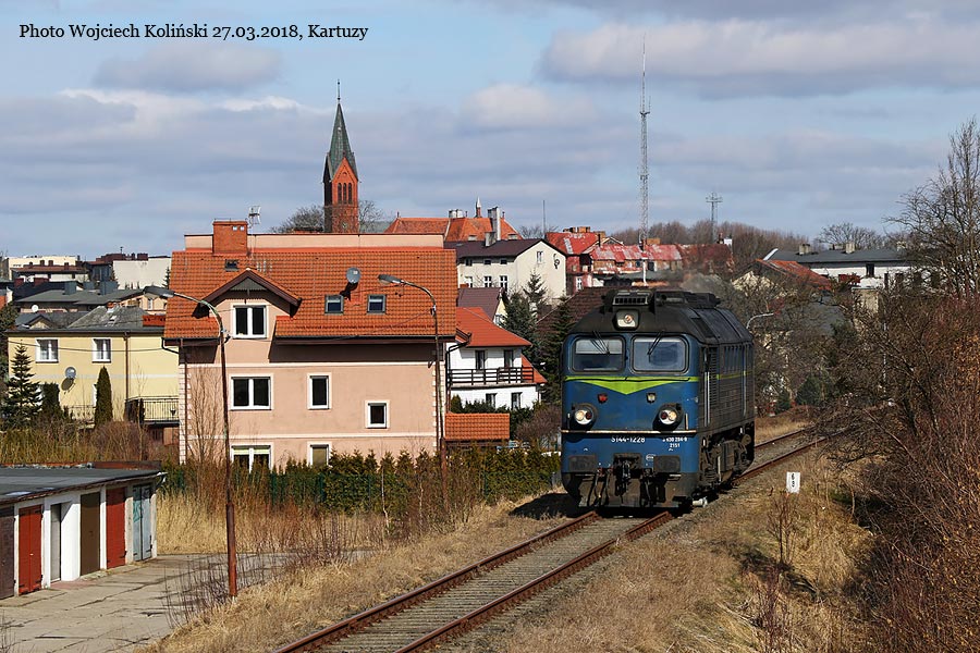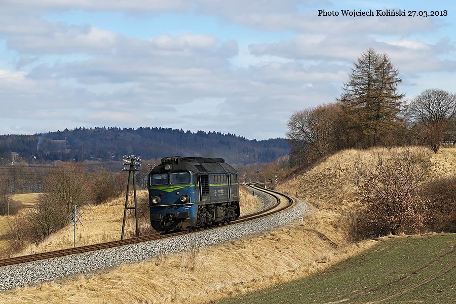 PKP Cargo ST44-1228 is going from Kartuzy to Koscierzyna 27.03.2018, track Krzeszna - Golubie Kaszubskie Photo W. Kolins |
