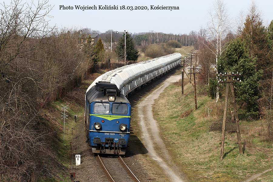 PKP Cargo ST44-1229 is going from Koscierzyna to Lipusz 18.03.2020, Koscierzyna Photo W. Kolins |