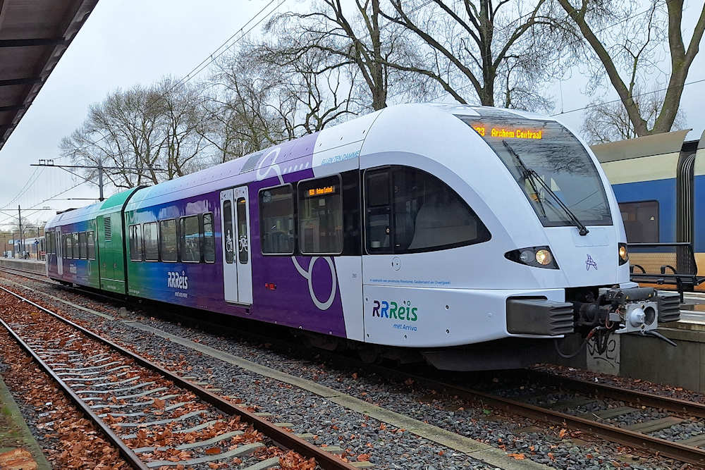 Arriva - The Netherlands Arriva diesel trainset GTW 2/6 nr. 260 in the latest RRReis provincial livery, is seen in Tiel before departure to Arnhem. Tiel, 07-12-2025 Digital photo by Marco van Uden |