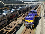 RXP - The Netherlands Former GDO class V60D diesel shunter 6004 in service for Railexperts has almost reached Amersfoort Centraal station with an empty car train. Amersfoort, 15-02-2024 Photo by Marco van Uden |