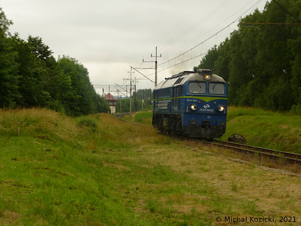 PKP Cargo ST44-1207 departs from Rebiszow on its empty ride towards Jelenia Gora, Poland, 02.07.2021.