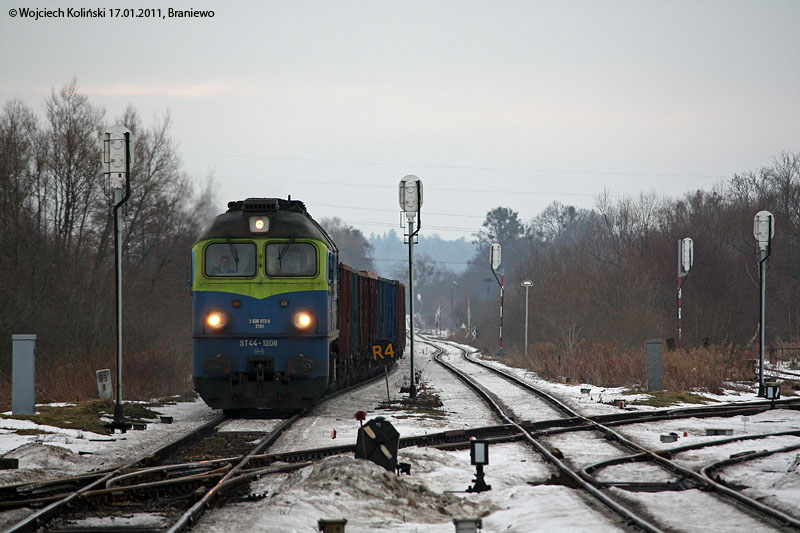 Polskie Koleje Panstwowe (PKP Cargo) ST44-1208 with a freight train Zajaczkowo Tczewskie - Braniewo 17.01.2011, Braniewo Photo W. Kolins |