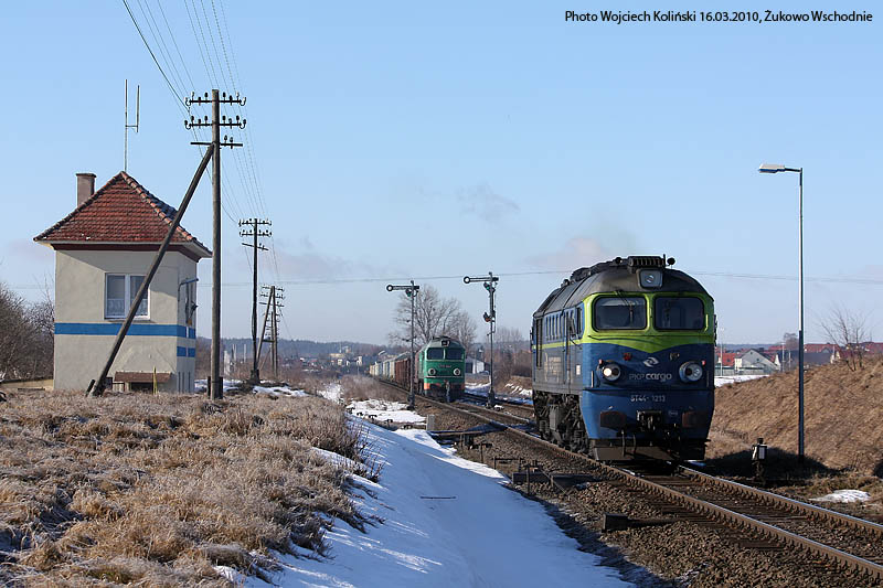 Polskie Koleje Panstwowe (PKP Cargo) ST44-1213+668 16.03.2010, Zukowo Wschodnie Photo W. Kolins |