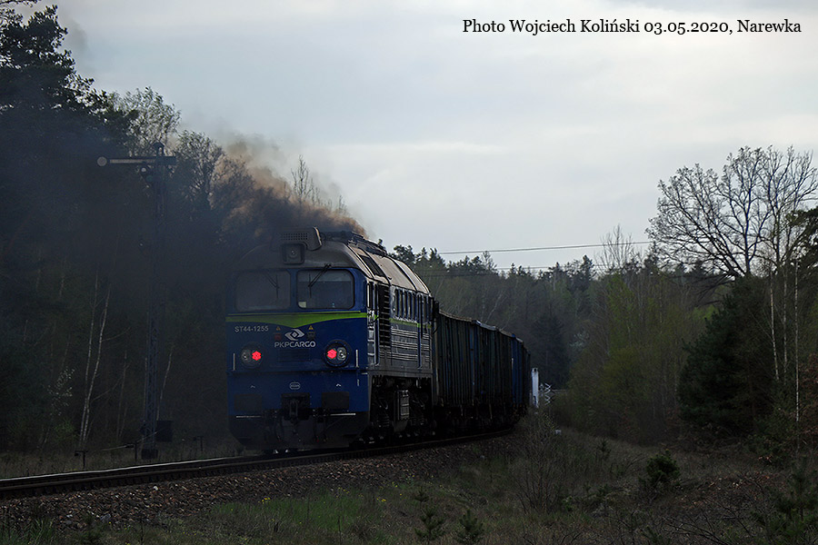 PKP Cargo ST44-1255 with the freight train Siemianowka - Radomsko (ST48-033 as the leader) 03.05.2020, Narewka Photo W. Kolins |