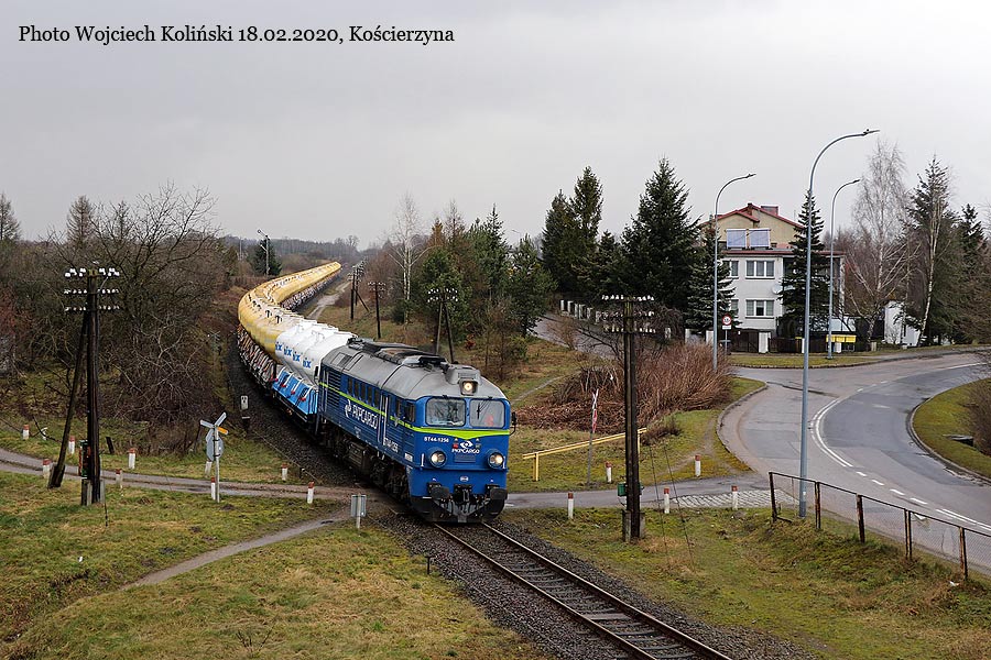 PKP Cargo ST44-1256 with the freight train Lipusz - Zajaczkowo Tczewskie - Kotouc Stramberk 18.02.2020, track Koscierzyna - Podles Photo W. Kolins |