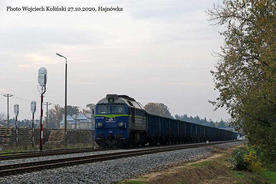 PKP Cargo ST44-1258 with the freight train Bielsk Podlaski - Siemianowka 27.10.2020, Hajnowka Photo W. Kolins |