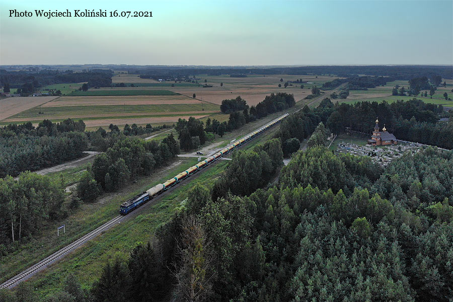 PKP Cargo ST44-1261 with the freight train Siemianowka - Oklesna On the right side of the photo you can see the Orthodox Church of the Ascension of the Lord in Orzeszkowo 16.07.2021, Orzeszkowo Photo W. Kolins |