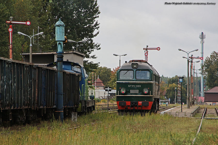 Polskie Koleje Panstwowe (PKP Cargo) ST44-1103, maneuvers on the station before a trip to Bydgoszcz Wschod SM42-1001 with a freight train to Stara Pila (the left side) 10.09.2014, Kartuzy Photo W. Kolins |