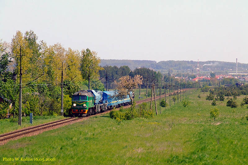 Polskie Koleje Panstwowe (PKP) ST44-1103 with a rescue train Zajaczkowo Tczewskie - Sycewice 16.05.2008, track Lesnice - Pogorzelice Photo W. Kolins |
