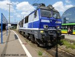 | PKP EP09-004 stands at Poznan Glowny on 5 June 2013. Scanned photo by Leon Schrijvers Leon2711schrijvers@yahoo.co.uk |