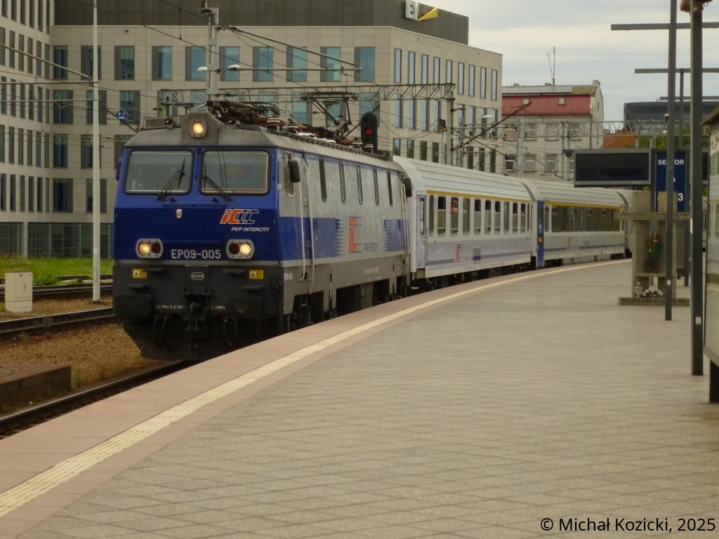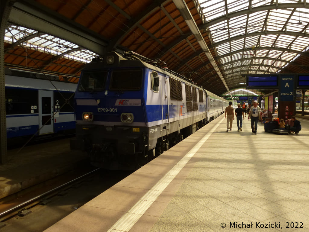 PKP IC EP09-004 will depart from Wroclaw Gl. on the "Mehoffer" InterCity service to Przemysl, Poland, 15.09.2022.