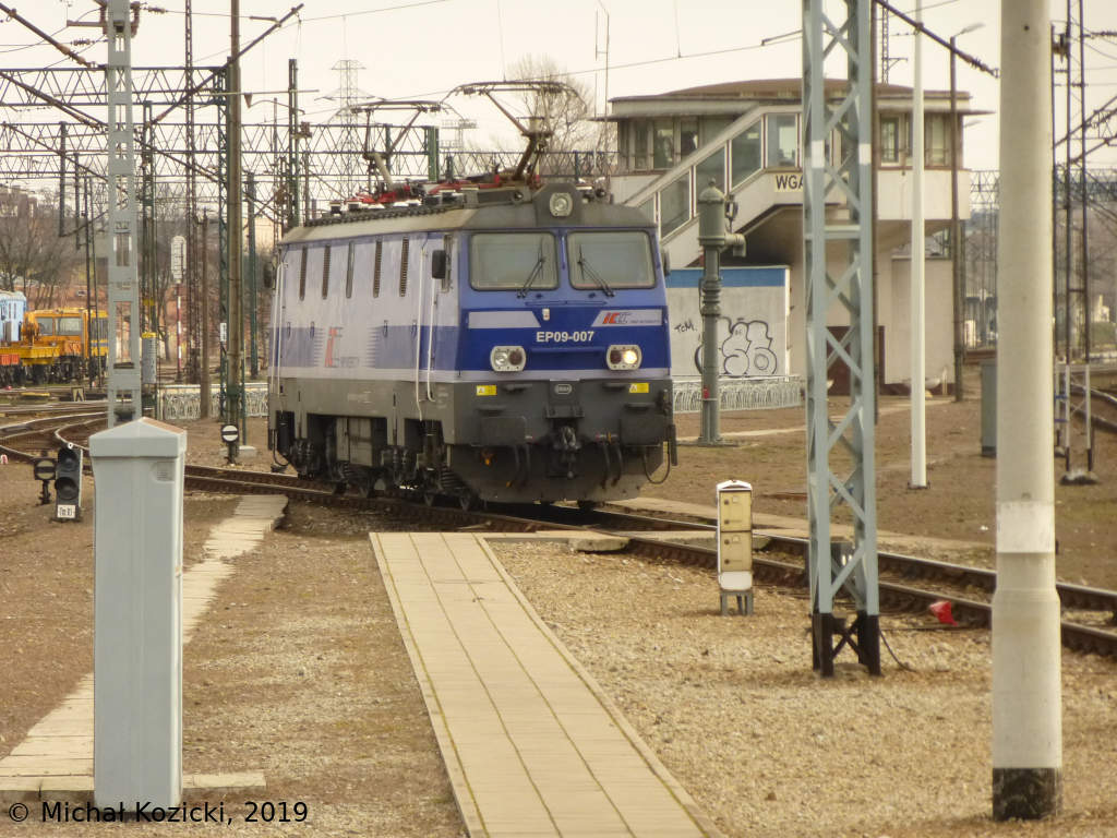 PKP IC EP09-007 waits for duties at station Wroclaw Gl., Poland, 03.03.2019.