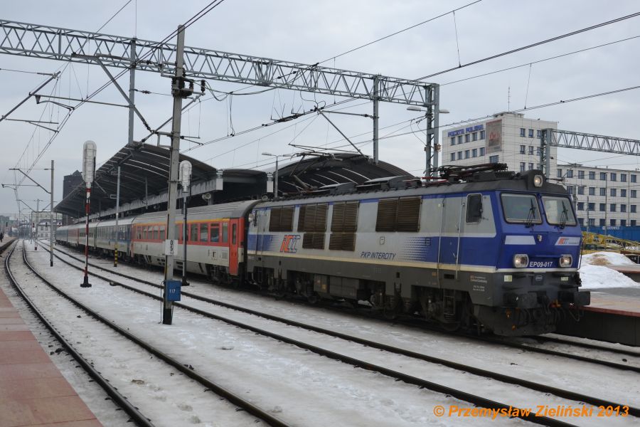 EP09-017 with an EC PRAHA train to Praha ; station Katowice - 31.01.13 ;