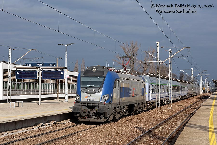 PKP Intercity EU160-001 with the passenger train "Zamoyski" Lublin - Kolobrzeg 03.03.2026, Warszawa Wschodnia Photo W. Kolins |
