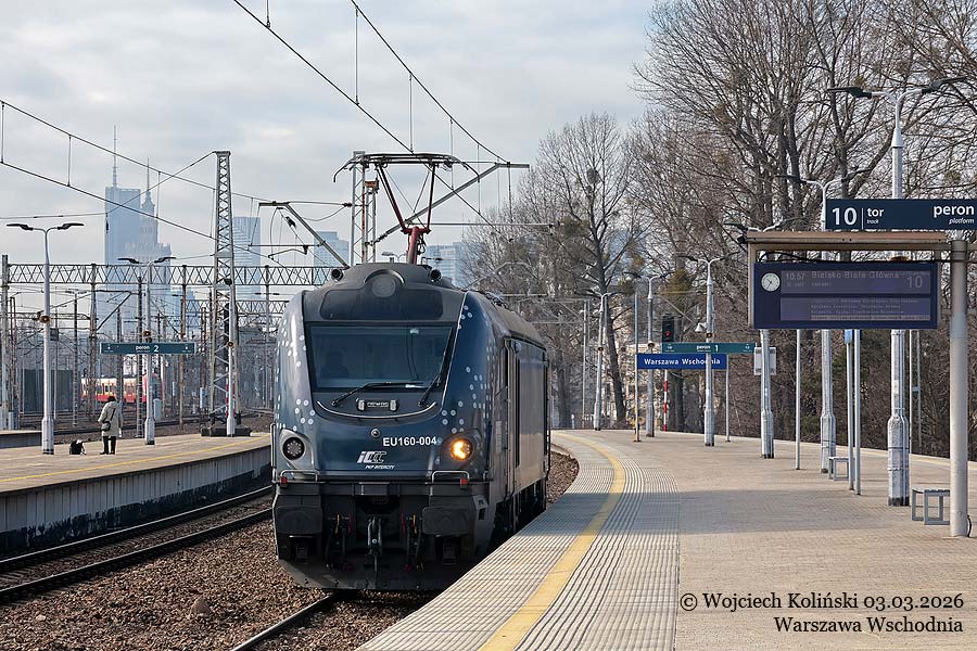 PKP Intercity EU160-004, maneuvers at the station 03.03.2026, Warszawa Wschodnia Photo W. Kolins |