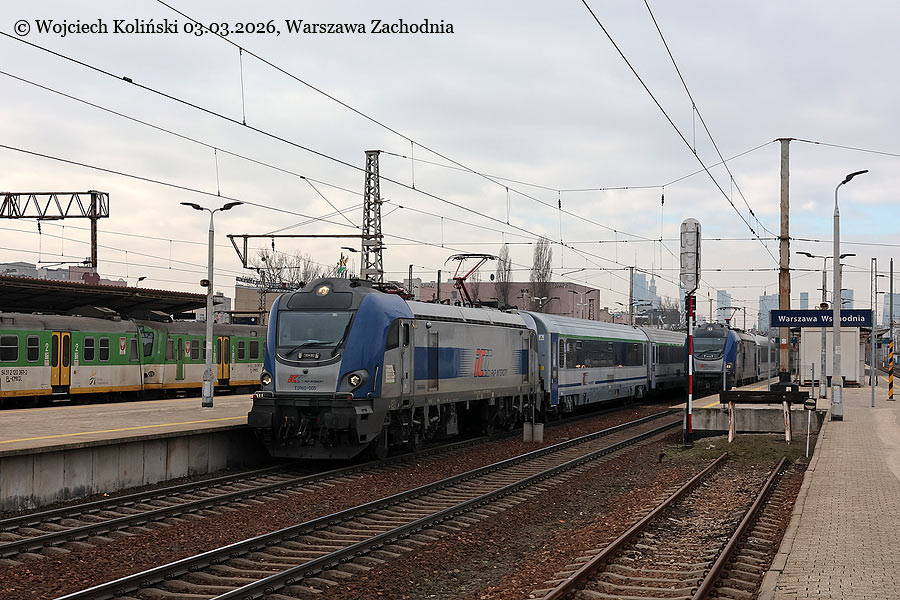PKP Intercity EU160-005 with the passenger train "Notec" Pila Glowna - Rzeszow Glowny and EU160-074 with the passenger train ": ech" Wroclaw Glowny - Warszawa Wschodnia 03.03.2026, Warszawa Wschodnia Photo W. Kolins |